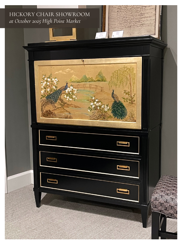 Looking back at High Point over the last few years, Fall 2025 feels somewhat like a turning point. Earlier seasons, especially Spring 2025, were full of bold contrasts. That April Market leaned heavily into black leather, stacked tables, masculine motifs, and ’70s–’80s callbacks. Dark woods did make an appearance then, but their presence felt a bit surprising for spring. This fall, those same deeper finishes feel less like a departure and more like the natural continuation of a longer story.