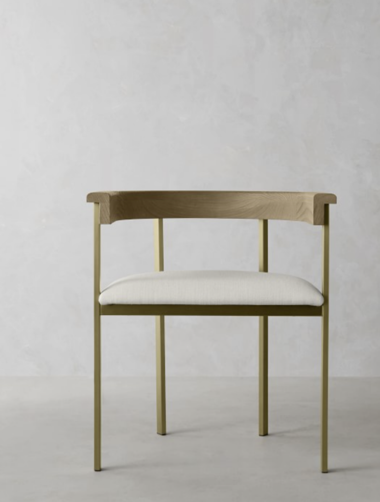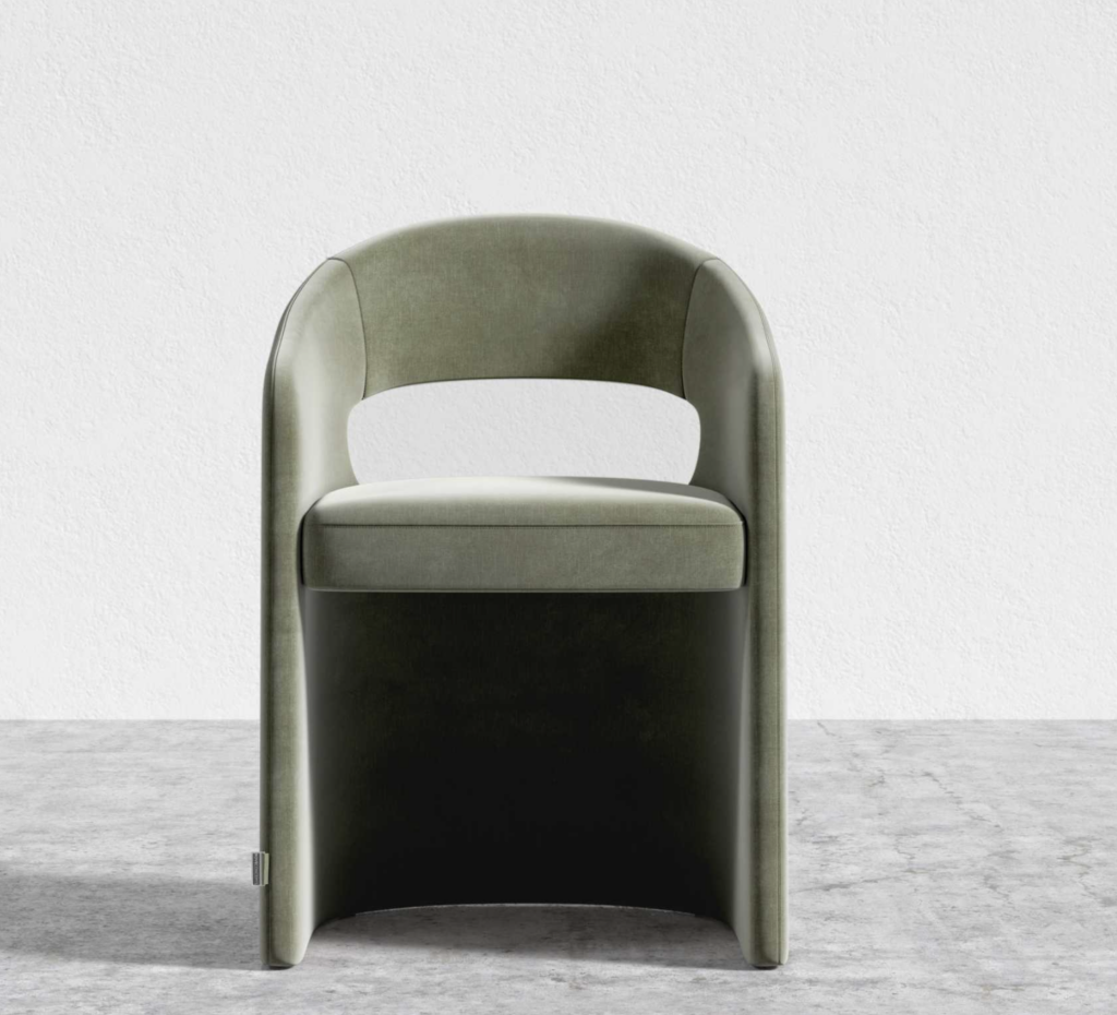 If you’re using a table and host chairs with lots of hardware detail, the side chairs should be simple and clean. I love the cutout detail and the textural element the velvet adds to these Rove Concepts dining chairs. The whole combination is formal, but approachable for your guests.